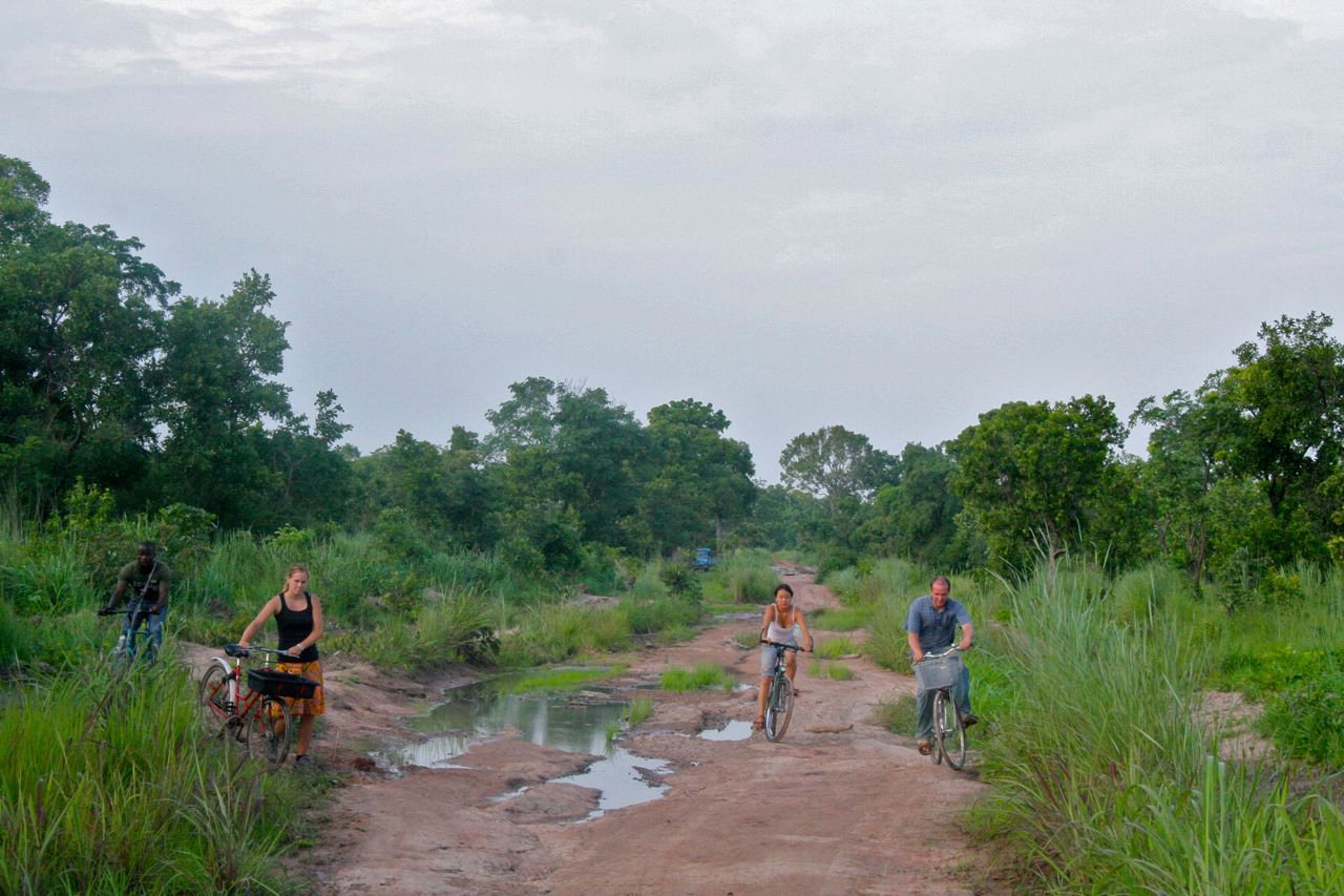 We also visited the nearby communities of Bamboi, Gomboi and Dwere (dw makes a j sound) to collect more information. Bamboi is a larger village on the other side of the river which provided some useful information on markets, but we didn't spend much time there. Gomboi and Dwere are much smaller and quite a way from the road. We would cram seven people into a taxi which was tiny and practically dragging on the ground with all of us as it wended its way down nearly washed away roads (at one point we had to reassemble a mini-bridge and guide the wheels onto the planks so it wouldn't tip over--we contemplated carrying the taxi, which probably would have been easier). The people of Gomboi and Dwere were very friendly and really helped us gain perspective of the challenges in more remote settings. I have to say that one of my favorite experiences during IDDS was riding bikes back about 20 km to New Longoro.